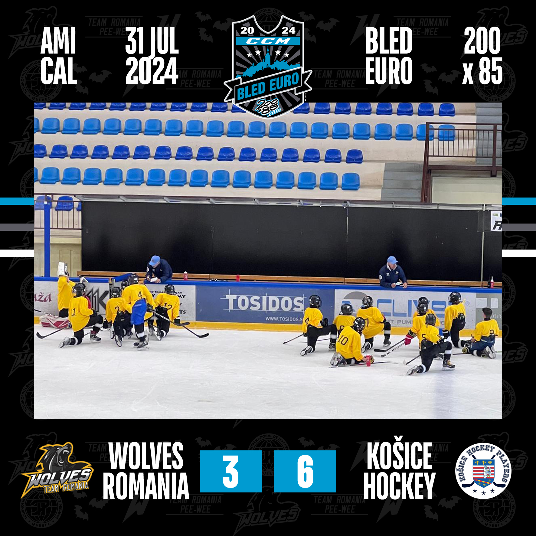 Team Romania Wolves Pee-Wee, la primele meciuri din acest sezon. Echipa ce reprezintă România la cel mai important turneu de copii la nivel mondial în hochei, Pee Wee Tournament în Canada, este în această perioadă în Slovenia la un puternic turneu găzduit la Bled. 17 hocheiști născuți 2012 sau mai mici și pregătiți de Laszlo Kovacs și Marius Gliga vor participa la CCM World Euro Bled Invite alături de reprezentante ale unora din cele mai puternice națiuni hocheistice din lume. Team Romania Wolves Pee Wee este în grupa B și începe cu meciuri împotriva celor de la Germany Eagles și Alpine Select. Grupa este completată de austriecii de la VSV. În deschiderea turneului tricolorii au disputat și două meciuri amicale cu Alpine Select și Kosice Hockey.